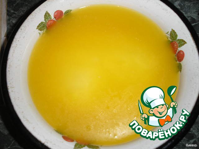 Приготовить пропитку. Смешать воду и варенье и примерно двумя столовыми ложками пропитать каждую из 4х частей.