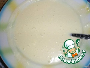Смешать маргарин, яйца и сметану, добавить соду, гашеную в уксусе.