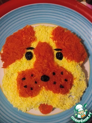 Салат в форме символа наступающего года – желтой собаки.