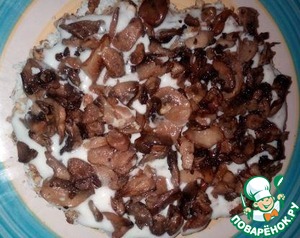 Третий слой - обжаренные шампиньоны. Этот слой майонезом покрывать не надо.
