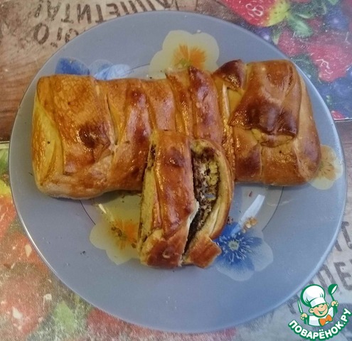 - Тесто слоеное дрожжевое (у меня упаковка 500г. Если упаковка 400 г, ничего страшного тоже подойдет) — 500 г