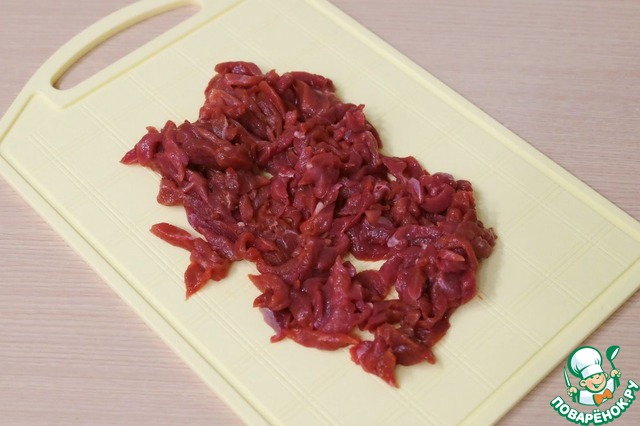 Филе утиной грудки нарезать тонкой соломкой.