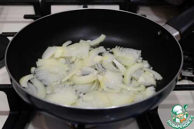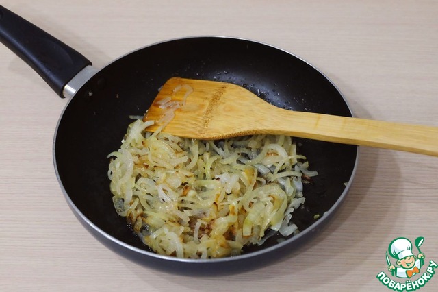 Пассеровать лук до легкой золотистой корочки.