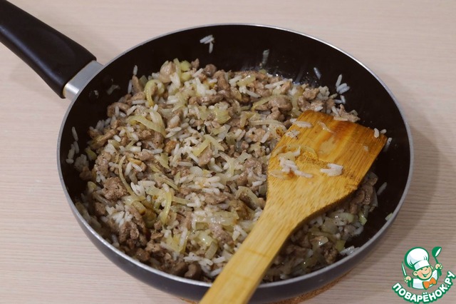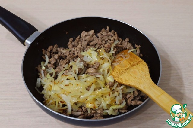 Соединить пассерованный лук и тушеное филе утки.