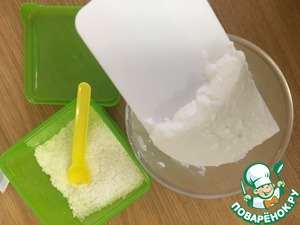 Творог смешать с сахзамом, можно добавить кокосовой стружки.