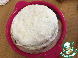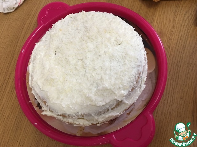Смазать кремом. Можете сделать только йогуртовую пропитку, будет ещё нежнее, здесь воля фантазии. Посыпать стружкой