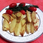 Противень застелить бумагой для выпечки или силиконовым ковриком, разложить картофель и готовить в духовке, заранее разогретой до 200 градусов, 20-25 мин.