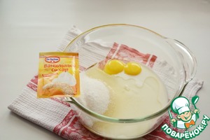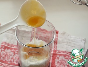 Желтки, сахар, растительное масло и сметану смешайте венчиком.