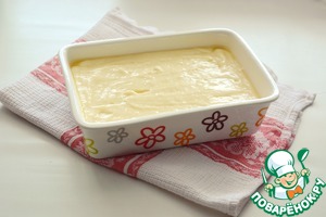 В смазанную маслом форму вылейте тесто. Размер моей формы 21*14 см.