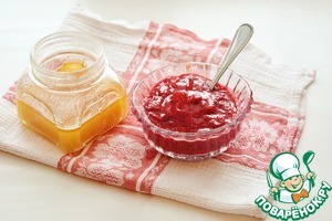 Для прослойки смешайте 100 г клюквенного пюре и 100 г мёда.