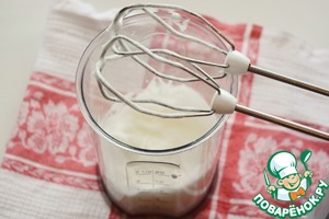 Взбивайте крем 15-20 минут, пока не получится тугая масса, которая хорошо держится на венчике