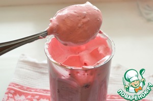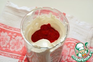 Добавьте к взбитым белкам 50 г клюквенного пюре и взбивайте еще 5 минут