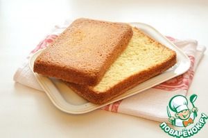 Остывший корж разрежьте на 2 части
