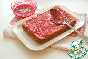 Смажьте каждую половинку клюквенной прослойкой и соедините их снова