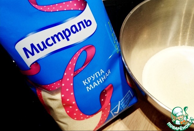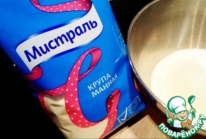 • Манную крупу смешиваем с разрыхлителем, ванилином и солью