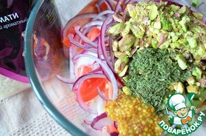 горчицу и сушеную зелень ( на мой вкус именно сушеная здесь уместнее),
