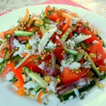 Яркий, красивый - и на вкус, и внешне; легкий и полезный. Готовить быстро и из продуктов "под рукой". Точно послужит украшением Вашего стола. Угощайтесь.