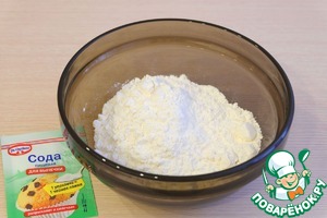 • В миске соединить сухие ингредиенты: муку (1 стакан) и соду ТМ "Dr. Oetker" (1 ч. ложку).