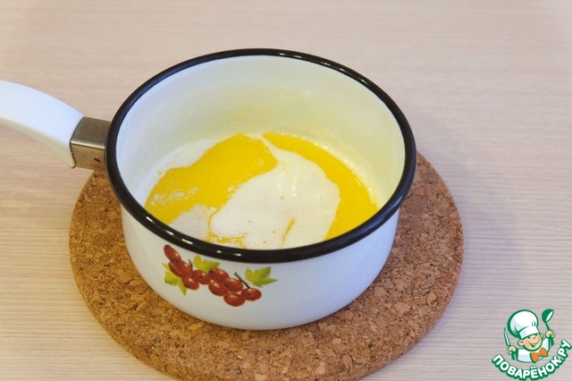 • Добавить в желтковую смесь растопленное сливочное масло.