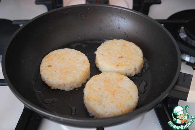 Рецепт «Закуска "Рыбные ёлочки на рисовых биточках"»: