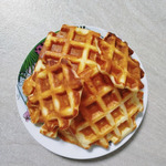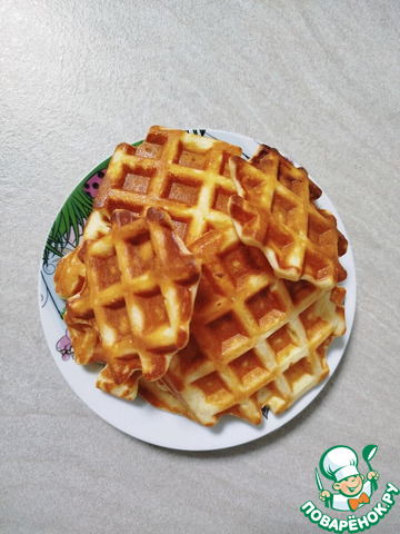 Получаются вот такие вафельки)У меня из этого количества теста получилось 5 больших вафель и еще одна''неполная'')
