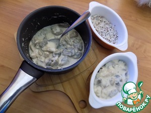 Блюдо очень напоминает классический жюльен. Только я добавила рис с киноа ТМ Мистраль и порция побольше жюльена. Празднично, красиво и вкусно!