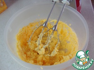 Масло комнатной температуры взбить с сахаром и желтками до пышного состояния.
