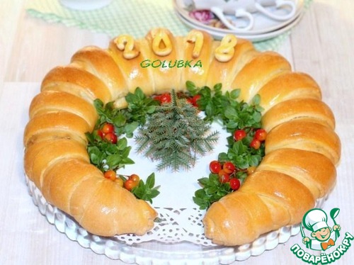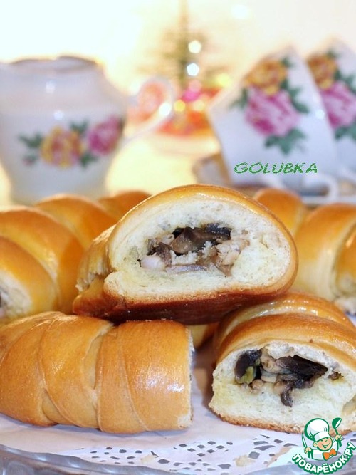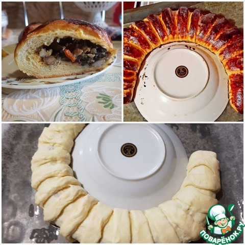Рецепт «Калач "Подкова" с грибами и курицей»: