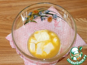 2. Приготовим тесто для пирога. Сливочное масло немного растопить, как на фото и охладить.