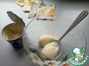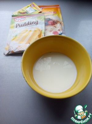 Берем пачку пудинга, в моем случае ванильного DR.OETKER. Следуя инструкции приготовим его.