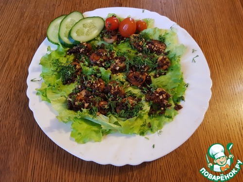 Салат рвём или нарезаем на тарелку.