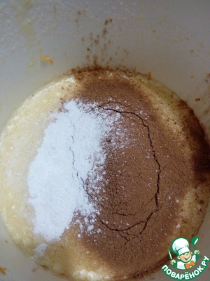 Затем просеиваем муку и хорошо перемешиваем тесто миксером.