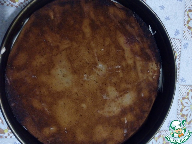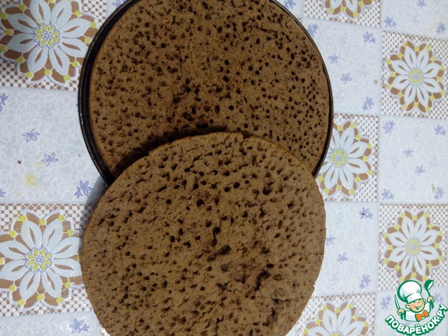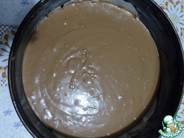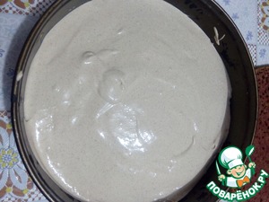 В разъемную форму кладем корж. На него выливаем всю прослойку.