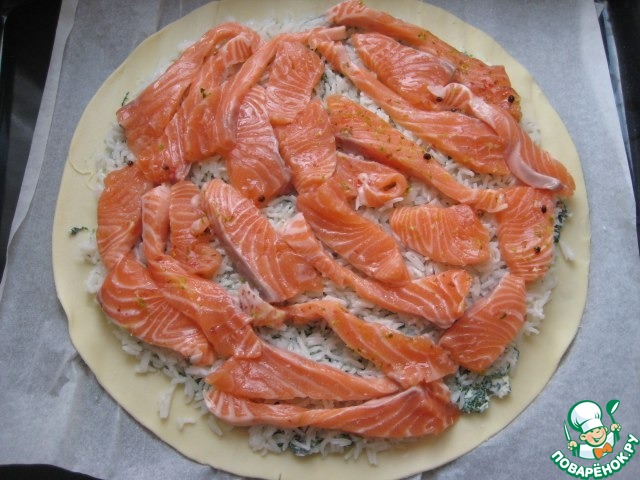 Рецепт «Слоеный пирог с семгой и рисом»: