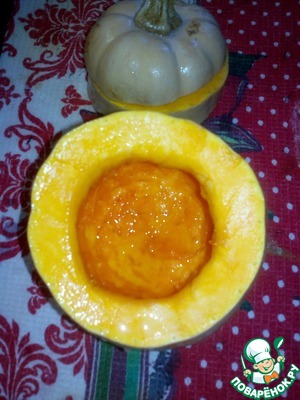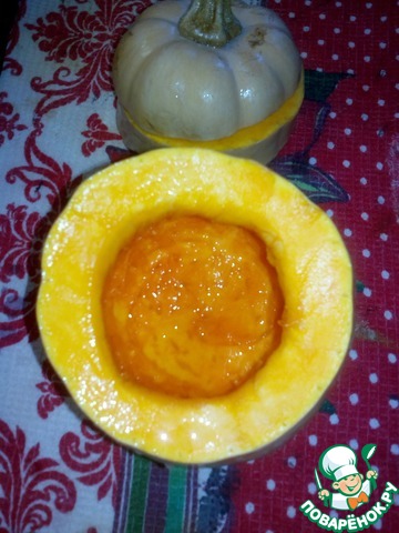 Наполняем тыкву начинкой, закрываем "крышкой" и запекаем при 180 градусах до готовности (тыква должна стать мягкой). Хотя эту самую готовность все понимают по-разному. Я, например, люблю очень мягкую.