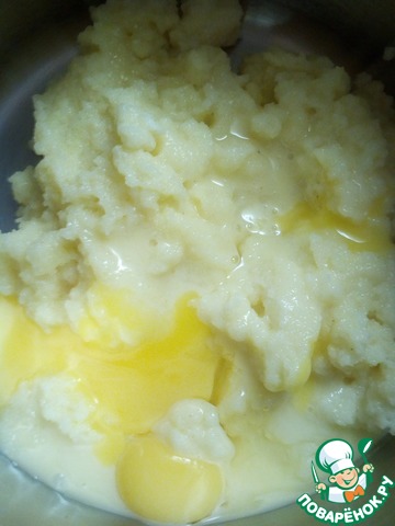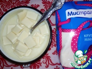 • В манную кашу добавить 2 яичных желтка, сгущенное молоко и 2 ст. л. кукурузного крахмала. Взбить.