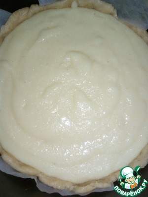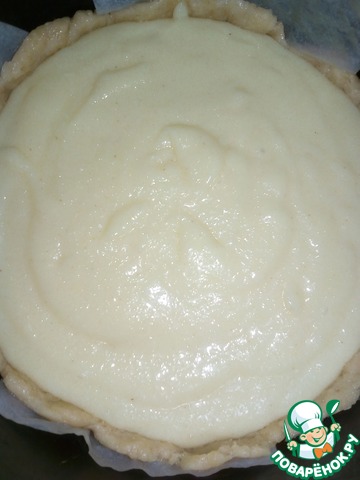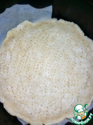 • Через положенное время освободить тесто от пленки. Выложить в подготовленную форму для выпечки, распределить по диаметру и сформировать бортики.