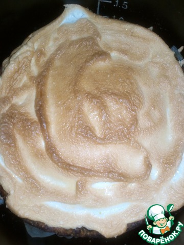 • Выложить взбитые белки поверх пирога вернуть изделие в духовку еще минут на 10, до того момента как безе подрумянится.