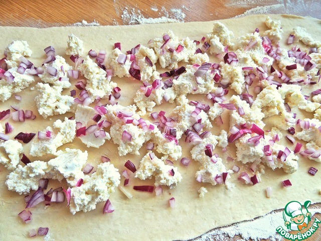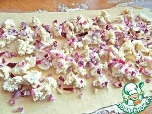 • Покрошить лук на тесто.