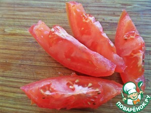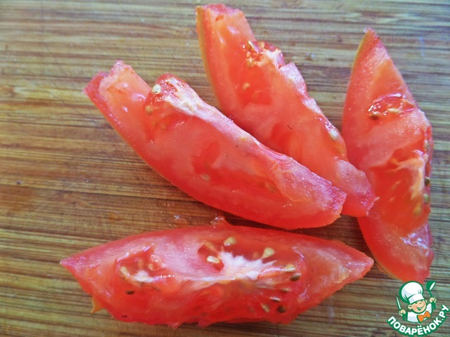 • Нарезать помидор немного, чтобы не было лишнего сока.