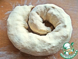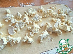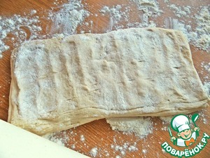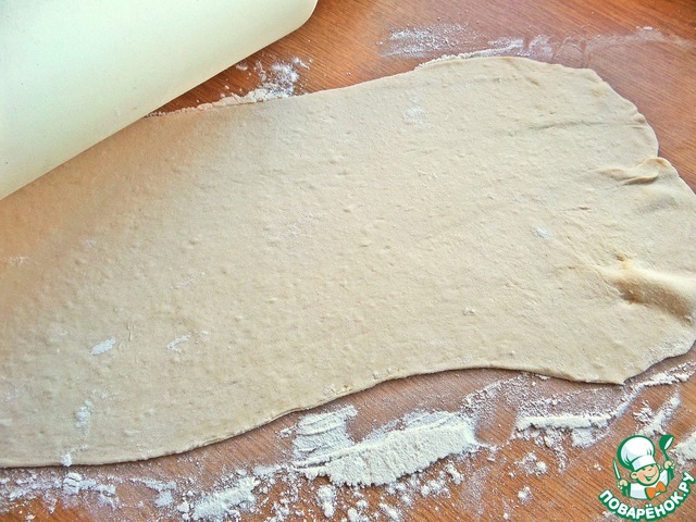 • Раскатать в широкую полоску.