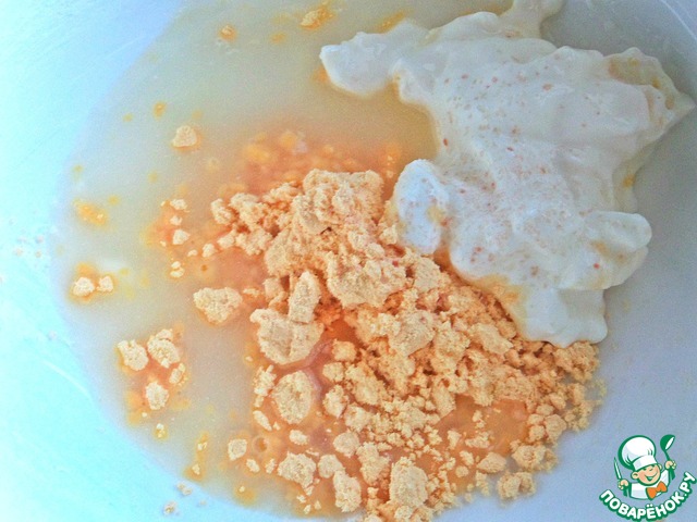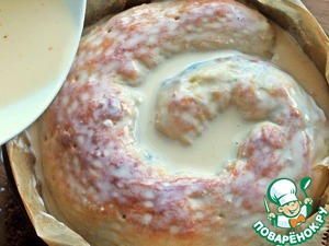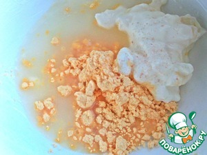 • В это время сделать заливку: смешать яйца или яичный порошок со сметаной и водой с солью.