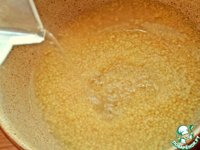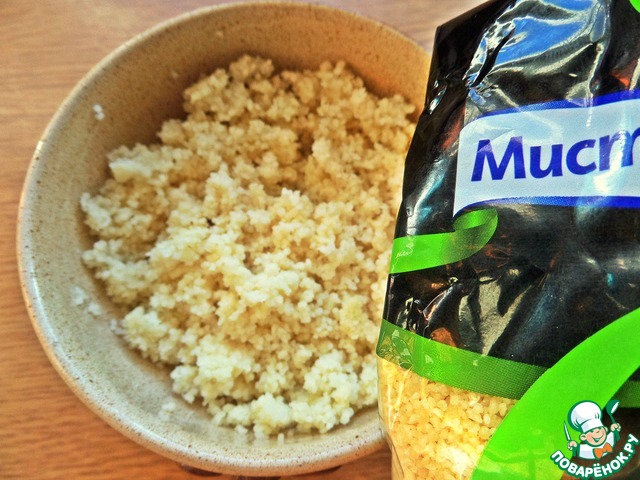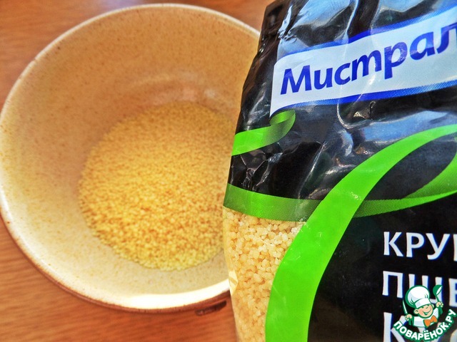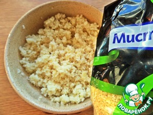 • Кускус насыпать в небольшую миску.
