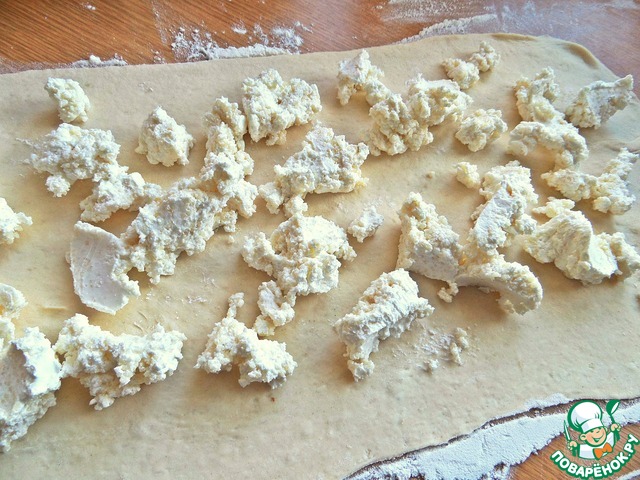 • Посыпать кусочки на тесто.