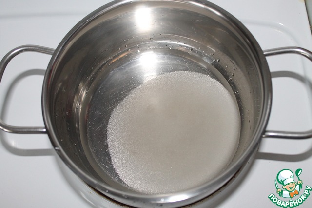 На следующее утро продолжаем готовить. Начнем с пропитки для бисквита - смешаем сахар и воду, прогреем до растворения сахара. Вливаем коньяк и полностью остужаем.