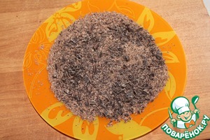 Половину шоколада натрем на крупной терке, оставшийся шоколад измельчим ножом или блендером в крупную крошку. -