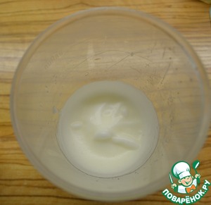 Добавить муку, сметану и желток. Перемешать до получения однородной массы.