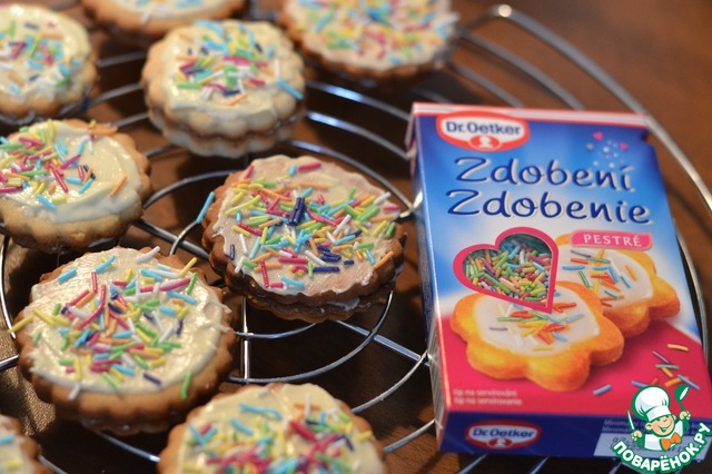 Верх печенья смазать шоколадом и посыпать посыпкой продукции Dr.Oetker.