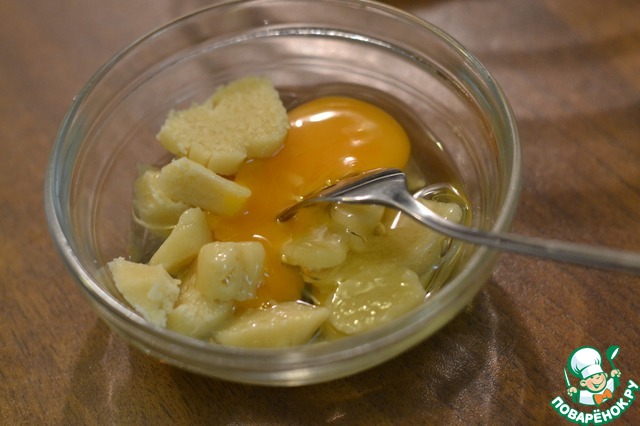 В отдельной миске смешать сахар, марципан и яйцо. Мешаем, пока не получим пастообразную массу.