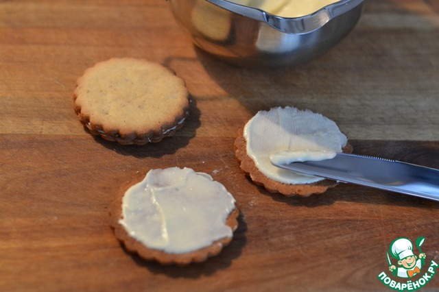 По краю каждого печенья нанести ободок из теста, оставляя серединку пустой. -